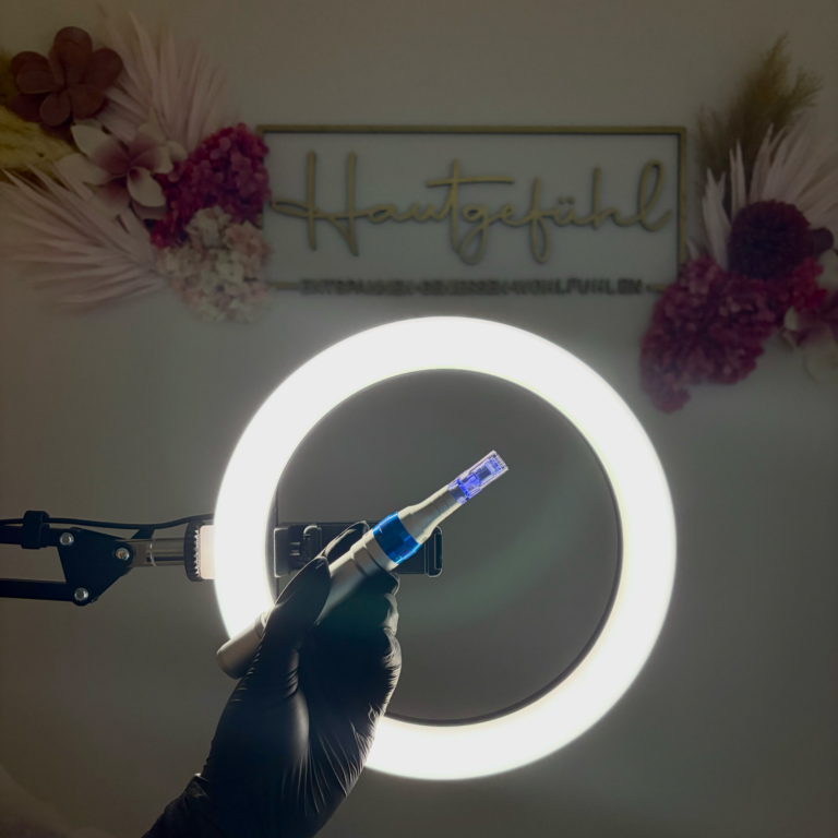 Beim Microneedling dringen mikrofeine Nadeln des Dermapens in die oberste Hautschicht ein. Dadurch entstehen minimale, kontrollierte Mikroverletzungen, die den Selbstheilungsprozess deiner Haut sofort aktivieren.